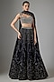Featuring a navy blue lehenga in satin organza and organza base with can-can. It is paired with a blouse and a dupatta. Accessorise this designer set with drop earrings, block heels and a clutch, perfect for cocktail soirees or sangeet ceremony.