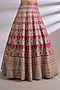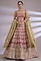 Featuring a rani pink lehenga in tissue and sequins base with paisley embroidery. It is paired with an embroidered blouse and an embroidered dupatta. Accentuate it with kundan polki or meenakari jewellery, embellished heels and a potli bag for a bridal look, Perfect wear for your wedding, engagement or mehendi ceremony.
