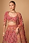 Featuring a red lehenga in raw silk base. It is paired with a blouse and a dupatta. Accentuate it with statement jewellery, low bun and heels for a wedding or engagement ceremony.