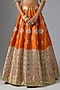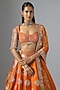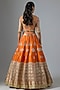 Featuring a rust lehenga in raw silk and shimmer organza base with a cancan. it is paired with a blouse and a dupatta. Accentuate it with statement jewellery, floral low bun and heels for a wedding, engagement or sangeet ceremony.