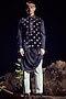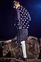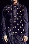 Featuring a blue bundi jacket in velvet base. It is paired with a matching kurta and contrasting pants.