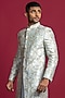 Light Blue Raw Silk & Banarasi Embroidered Sherwani Set