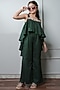 Green Blended Cotton Floral Embellished Jumpsuit For Girls