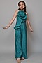 Featuring a green jumpsuit for girls in roman silk base with black zip closure. Style it with sandals and hair accessories for a festive occasion or birthday party.