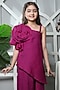 Featuring a wine asymmetric floral top for girls in blended cotton base with elasticated straps detail. It is paired with pants. Style it with sandals and hair accessories for a festive occasion or birthday party.