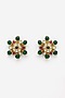 Featuring a pair of gold finish stud earrings studded with green onyx, red and white kundan polki, set in 92.5 sterling silver.