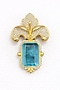 Gold Finish Aqua Blue Doublet & CZ Stone Orchid Petal Brooch