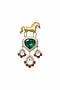 Gold Finish Emerald Doublet & Ruby Horse Brooch