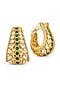 Featuring a pair of gold finish hoop earrings studded with kundan polki and green stones, set in brass. Perfect for festive occasions or pooja ceremony, this jewellery is a wardrobe must for those who love to shine effortlessly.