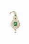 Featuring a gold finish oval brooch studded with moissanite, emerald doublet, pearl and CZ stones, set in brass. Style it on a solid blazer, saree or dress to add a pop of elegance, perfect for weddings, festive events or statement daytime looks.