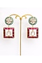 Featuring a pair of gold finish dangler earrings studded with moissanite polki, ruby and aquamarine stones, set in brass. Perfect for festive occasions or pooja ceremony, this jewellery is a wardrobe must for those who love to shine effortlessly.