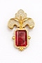 Gold Finish Ruby Doublet & CZ Stone Orchid Petal Brooch