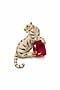 Gold Finish Ruby Doublet & CZ Stone Tiger Brooch
