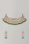 Gold Finish Uncut Kundan Polki & Emerald Beaded Choker Necklace Set