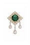Featuring a gold finish carre brooch studded with uncut kundan polki, emerald doublet and CZ stones, set in brass. Style it on a solid blazer, saree or dress to add a pop of elegance, perfect for weddings, festive events or statement daytime looks.