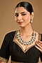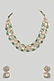 Featuring a two-tone finish necklace studded with kundan polki and emerald synthetic stones, set in brass. It is paired with a matching of pair of earrings. Add a touch of sparkle to your ensemble, perfect for engagement or wedding ceremony.