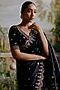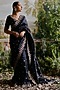 Featuring a charcoal black saree in organza base with antique gold dori, aari and hand embellishment. It is paired with a dupion silk blouse and a petticoat. Style it with a necklace, dangler earrings and heels for a wedding or engagement ceremony.