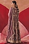 Featuring a dull purple jacket in chanderi silk base with dori, sequins and bead hand work. It is paired with pants and an organza embroidered dupatta. Accentuate it with heels and statement earrings for sangeet ceremonies.