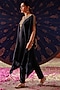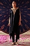Featuring a navy blue kaftan in satin georgette base with antique gold dori detail and hand embroidery. It is paired with pants. Accentuate it with statement earrings and heels for a graceful look, perfect for festive gatherings.