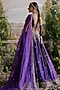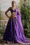 Featuring a purple lehenga in raw silk base with antique gold dori work and hand embroidery. It is paired with a blouse and an organza dupatta. Style it with polki jewellery and heels for a bridal look.