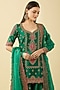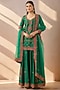Featuring a rama green kurta in cotton base with bead, dori, zari and sequins embroidery. It is paired with sharara pants and a dupatta. Accentuate it with heels and statement earrings for mehendi ceremonies.