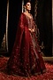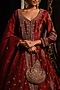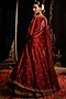 Featuring a red maroon high-low jacket in chanderi base with gold dori hand embellishment. It is paired with a lehenga and an organza dupatta. Accentuate it with statement earrings and heels, perfect for weddings, receptions or grand festive celebrations.
