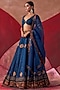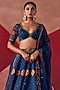 Featuring a teal blue lehenga in chanderi and organza base with gold dori hand embroidery. It is paired with a blouse and an embroidered dupatta. Accentuate it with heels and statement earrings for sangeet ceremonies.
