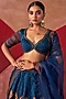 Teal Blue Chanderi & Organza Hand Embroidered Lehenga Set