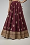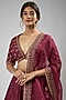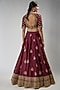 Featuring a wine lehenga in chanderi base with dori work and sequin embroidery. It is paired with a blouse and an organza dupatta. Style it with dangler earrings and heels for a wedding or reception ceremony.