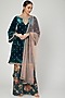 Featuring a teal blue kurta set in velvet base with a flare including gota patti, crystals and marodi cording embroidery. It is paired with a matching cotton silk floral printed pallazo pants and a blush peach shimmer net dupatta.