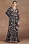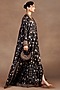 Featuring a black kaftan in silk base with print, beads, resham thread, sequins and antique gold metallic embroidery. Accentuate it with gold stud earrings, a clutch and block heels for evening soirees or a festive look.