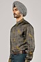 Featuring a dark green shirt in linen satin base with signature striped piping details and print. Style it with pants for casual wear, exuding charm and elegance