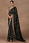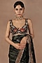 Featuring an emerald green saree in silk base with print and gota work. It is paired with a silk blouse having resham thread and sequins work, including a cotton lycra underskirt. Accentuate it with gold drop earrings, a sleek bun and block heels for a wedding or a mehendi ceremony.
