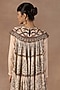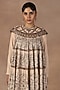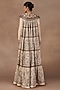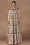 Featuring an ivory maxi dress in silk base with crystals, zari, kasab, sequins and antique embroidery. Accentuate it with gold stud earrings, a clutch and block heels for evening soirees.