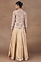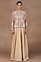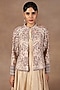Featuring an ivory jacket in silk base with crystals, stones, kasab, kora and resham embroidery. Accentuate it with a dress, stud earrings, a clutch and block heels for evening soirees or a festive look.