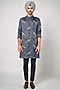 Featuring a medium blue kurta in linen satin base with striped piping details and tonal print. This contains one piece only.