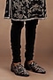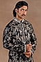 Featuring a black kurta in silk base with print and metallic embroidery. It is paired with cotton lycra churidar. Style it with kolhapuri sandals for a festive occasion, cultural event, wedding or engagement wear.
