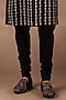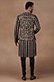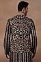 Featuring a black nehru jacket in silk base with crystal, kasab, dabka work and resham embroidery. It is paired with a silk kurta and cotton lycra churidar. Style it with mojaris for a cultural event, wedding, sangeet or engagement wear.