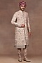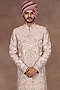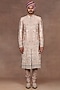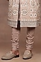 Featuring a blush pink sherwani in silk base with crystal, beads and sequins embroidery. It is paired with a silk kurta and cotton lycra churidar. Style it with mojaris and safa for a wedding or engagement wear.