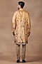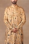 Featuring a mustard kurta in art silk base. It is paired with pants. Style it with mojaris for a royal and refined look, perfect for a festive occasion, wedding or engagement ceremony.