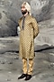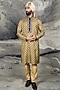 Featuring an olive mustard kurta in mulberry silk base with gold embroidery. It is paired with cotton satin lycra pants. Perfect for a festive occasion or pooja ceremony, exuding charm and elegance.