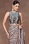 Featuring a multi-colored saree in georgette base with print, zari and sequins embroidery. It is paired with a sage and emerald green ombre silk blouse having zari and sequins work, including a cotton lycra underskirt. Accentuate it with gold drop earrings, a sleek bun and block heels for a wedding or a mehendi ceremony.