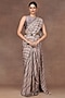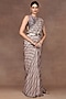 Featuring a multi-colored saree in georgette base with print, zari and sequins embroidery. It is paired with a mauve and pink ombre silk blouse having zari and sequins work, including a cotton lycra underskirt. Accentuate it with gold drop earrings, a sleek bun and block heels for a wedding or a engagement ceremony.