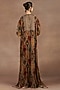 Taupe Silk Velvet Ikat Printed & Embroidered Kaftan