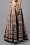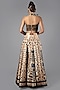 Featuring a beige and dark blue skirt in dupion blend base with print. It is paired with a matching dark blue tencel luxe and tulle quilted bustier having stripe piping detail and embroidery.