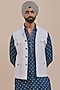 Featuring a pearl ivory nehru jacket in linen base with flap pockets and a mandarin collar. Style it with a kurta set and mojaris for a festive celebration, cultural event, wedding or engagement ceremony.
