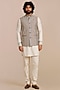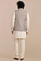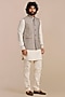 Featuring an ivory-orange nehru jacket in viscose base with thread detailing and crystal embellished buttons. Accentuate it with a kurta set and classic leather mojaris for a festive celebration, wedding or engagement ceremony.