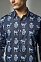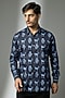 Featuring a navy blue shirt in giza cotton base. Accentuate it with tailored black or neutral trousers and sleek loafers for a sharp look, ideal for evening get-togethers, festive gatherings or stylish social events.