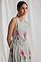 Featuring a green dress in cotton base with a boat neckline, hand-block print and embroidery. Accentuate it with statement earrings and heels for evening wear.