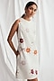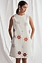 Featuring a white shift dress in corduroy base with round neckline, side pockets, straight cut, hand-block print and embroidery. Accentuate it with statement earrings and heels for evening wear.
